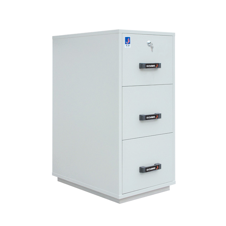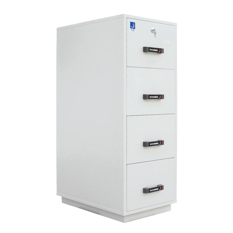 產品特點: 通過兩小時防火檢測認證 抽屜式設計,使用便捷 獨特的耐高溫內盒(DPB)設計 采用進口防火材料和導軌保證優異品質 選用進口可調機械密碼鎖,加強防盜的同時兼顧美觀實用 可調式文件夾置放架,便于資料整理